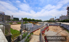 プレサンスコーポレーションが大阪市西淀川区柏里3丁目の駐車場跡地に建設中の(仮称)プレサンス西淀川区柏里3丁目。JR塚本駅至近に立地するマンション物件で、規模は地上14階建て、高さ41.83m、延床面積1,877.19㎡、2024年7月の竣工を予定している。