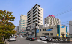 三共生興が神戸市中央区八幡通4丁目の駐車場跡地に建設した東横INN神戸三ノ宮駅市役所前。神戸市内では5棟目となる東横INNチェーンのホテルで、規模は地上14階建て、高さ47.70m、延床面積2,662.57㎡、客室数170室、2019年6月に竣工、2020年1月に開業した。
